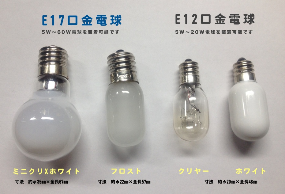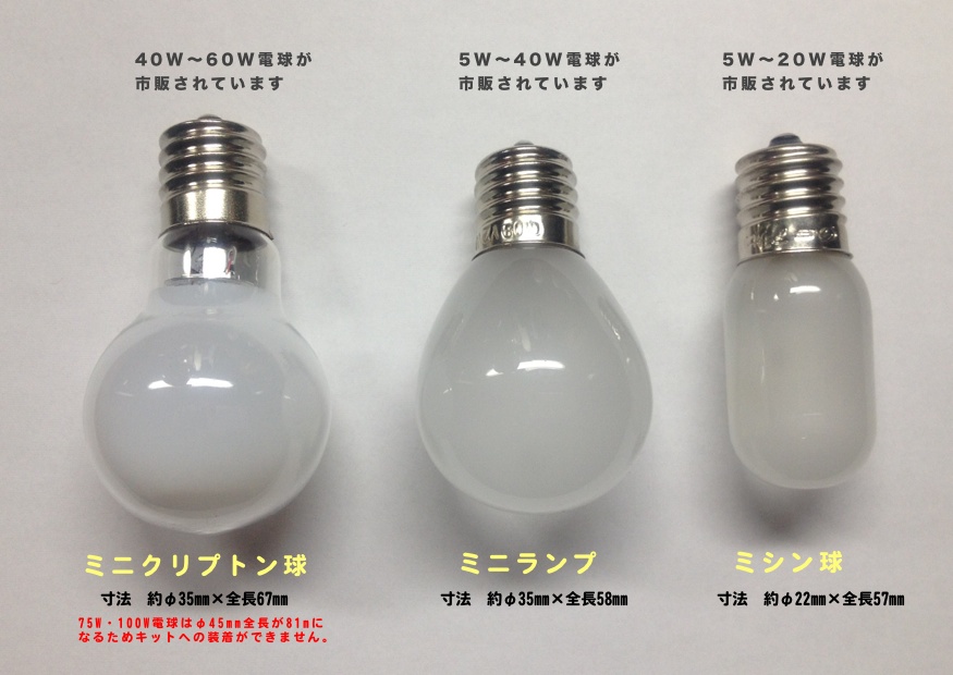 このキットには、E17口金 25W又は、15Wフロストミシン球が付属します。